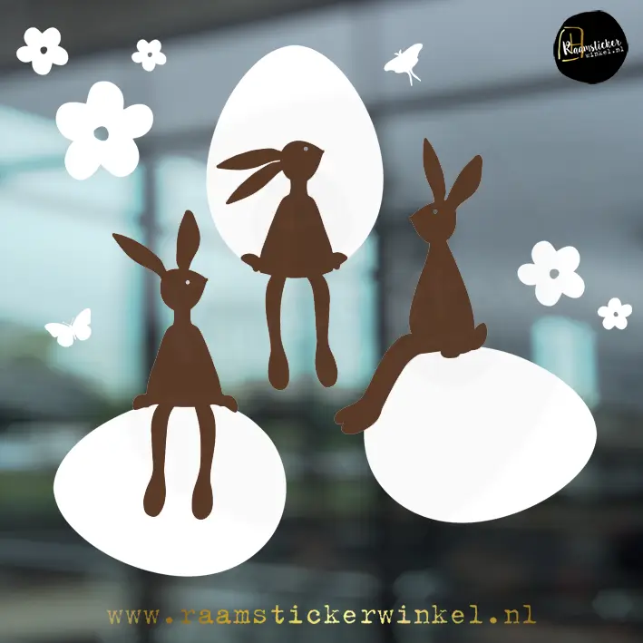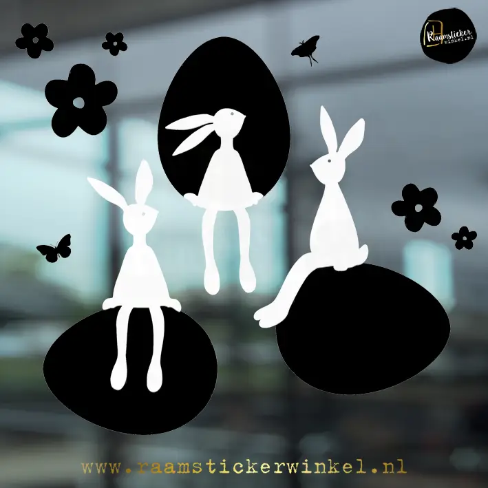 Breng een vrolijke en sfeervolle paas uitstraling in huis met deze raamsticker set van 3 eieren met konijntjes en bloemetjes. De combinatie van speelse haasjes en subtiele bloemen zorgt voor een frisse en stijlvolle voorjaarsdecoratie op ieder raam.